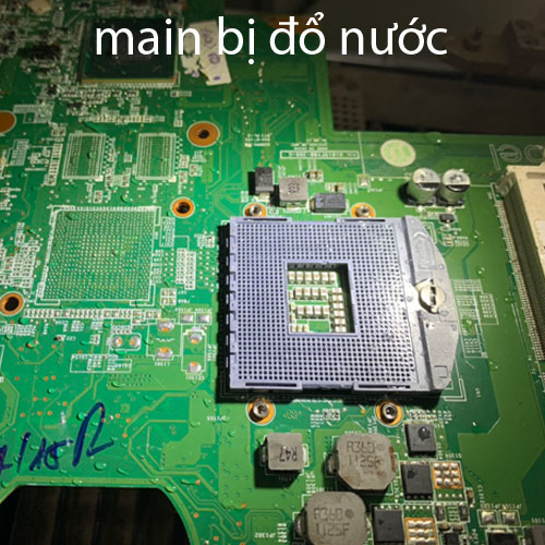 nước vào đến khu vực main của máy. Có trường hợp máy bị chập luôn bật không lên, có trường hợp chưa bị chập. đều cần phải tháo ra làm sạch main, xấy lại, ngay cả khi máy vẫn bật lên được mà xác định có nước vào main thì vẫn nên làm sạch main và xấy.